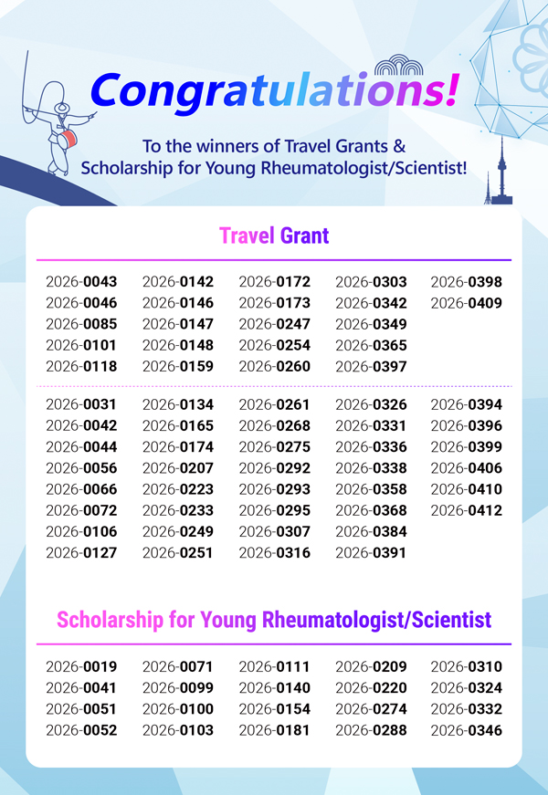 Winners of Travel Grant & Scholarship for Young Rheumatologist/ Scientist