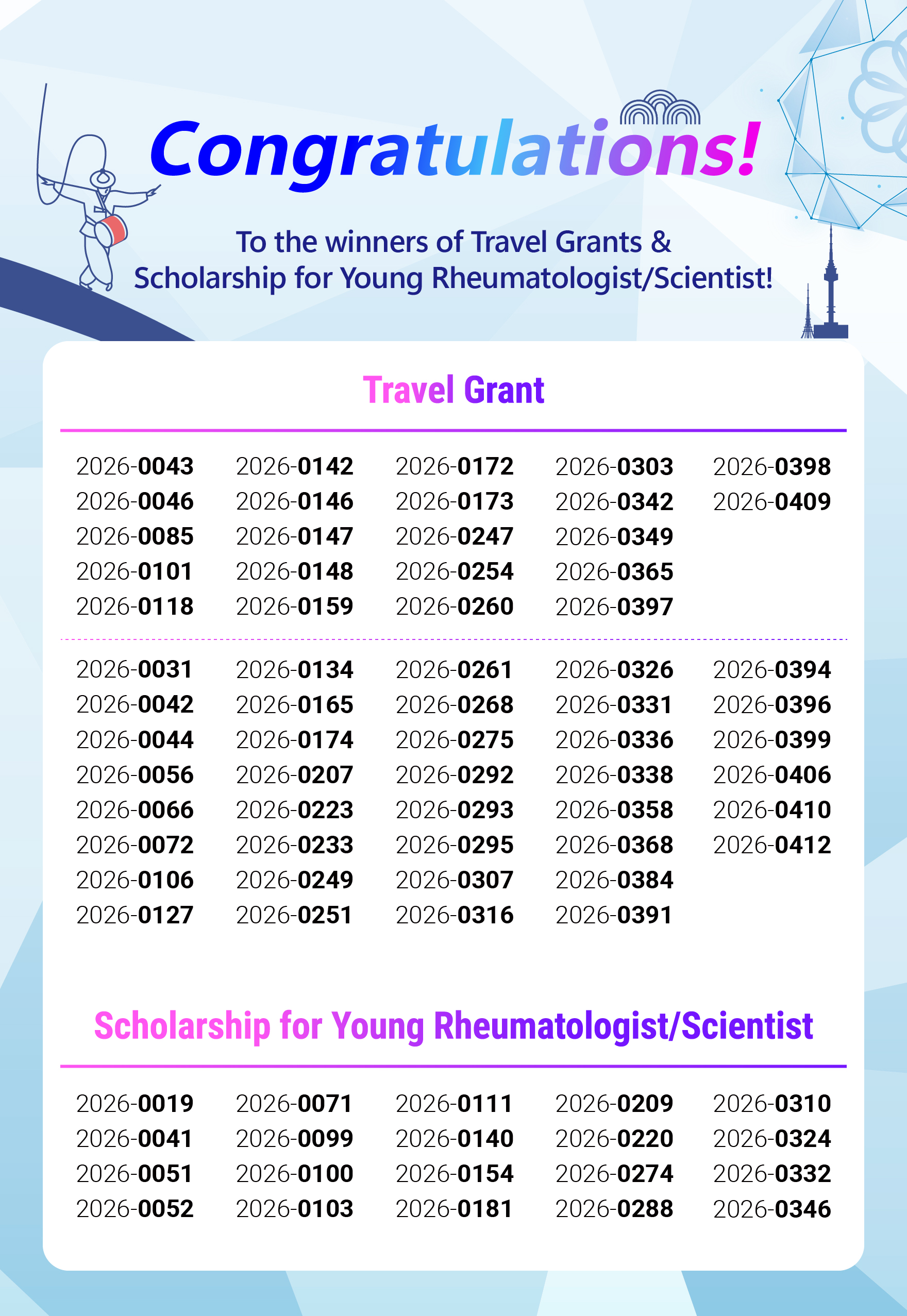 Winners of Travel Grant & Scholarship for Young Rheumatologist/Scientist